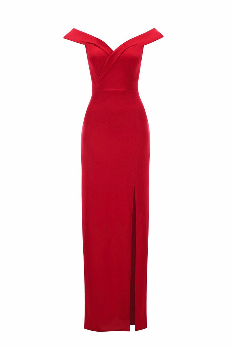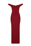 Bordo Kruvaze Yaka Yandan Yırtmaçlı Uzun Abiye Elbise