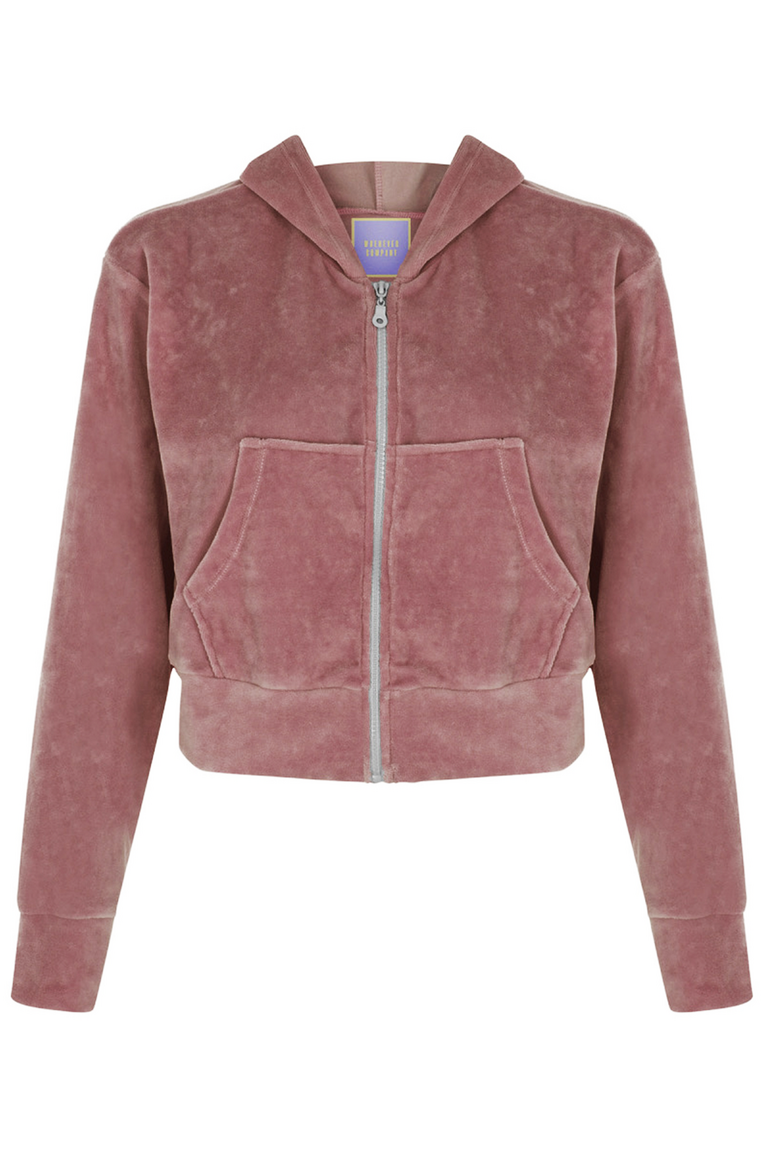 Gül Kurusu Pembe Ultra Soft Kadife Fermuarlı Crop Eşofman Üstü