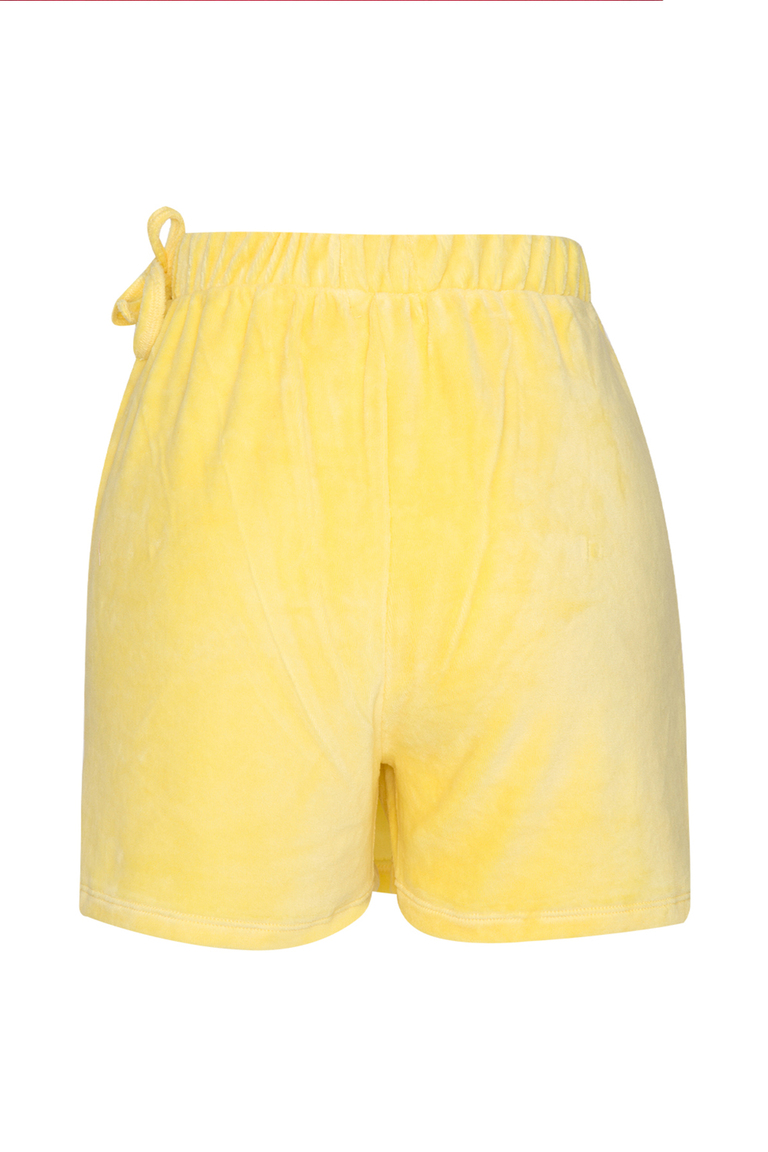 Sarı Yandan Bağlı Yazlık Kadife Mini Şort Etek