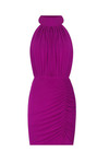 Siklamen Boyundan Bağlı Drapeli Kısa Mini Elbise