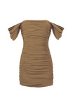 Taş Rengi Bej Degaje Kollu Drapeli Mini Elbise